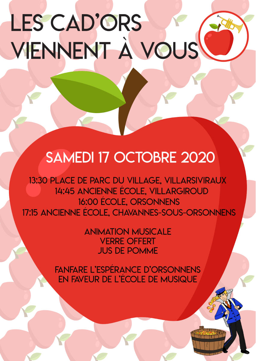 Concert. C'est avec grand plaisir que nos Cad'Ors vous convient à leur concert annuel qui se déroulera le samedi 12 mars prochain à 20h à Orsonnens ! 🎶 La première partie sera animée par l'Edel-Lyre, les cadets des fanfares du Crêt, de La Joux, et de Vuisternens-devant-Romont. |